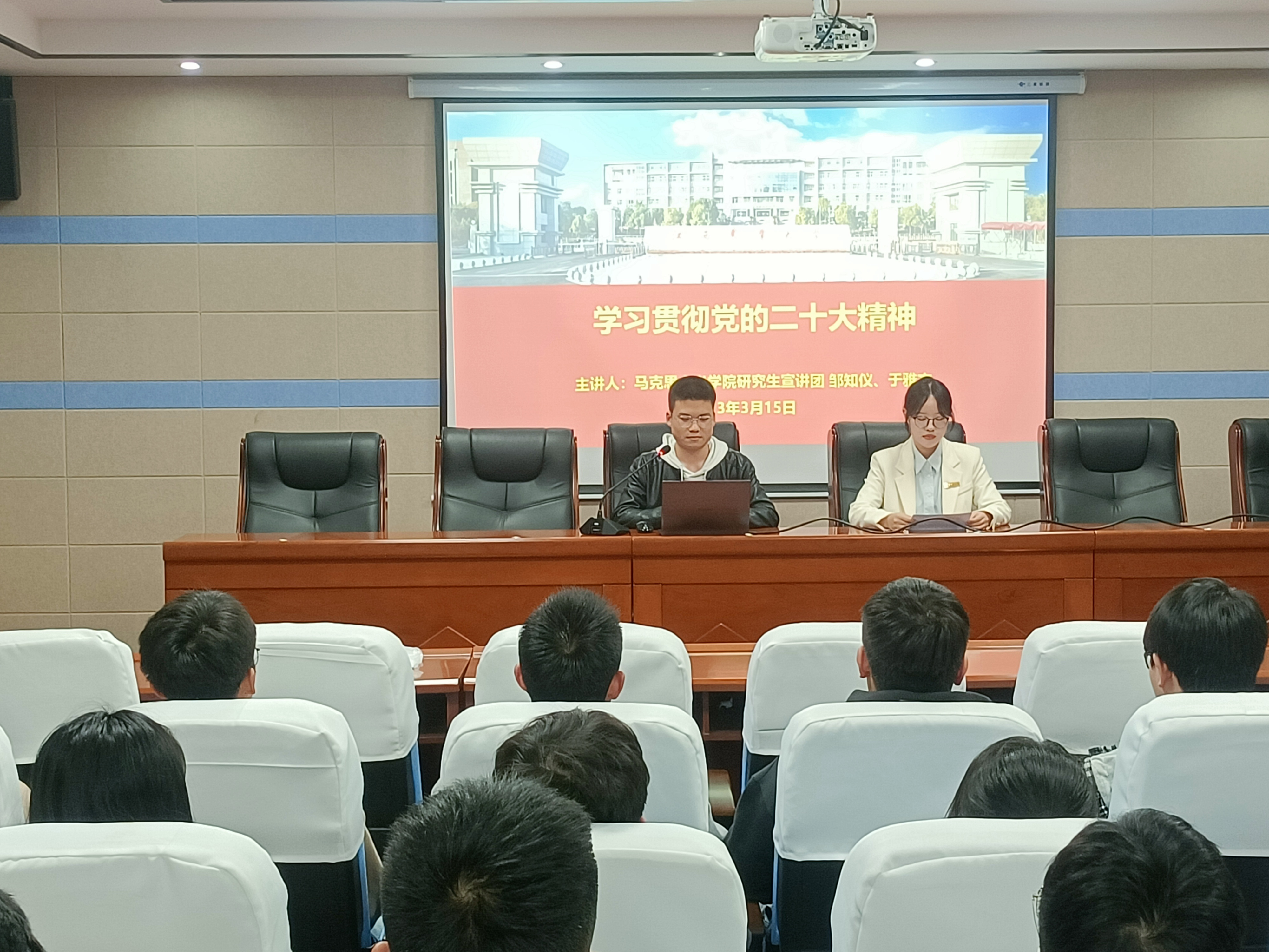 3月15日晚,公司举行学习贯彻党的二十大精神培训班,邀请马克思主义公司习近平新时代中国特色社会主义思想研究生宣讲团的两位成员宣讲党的二十大精神。