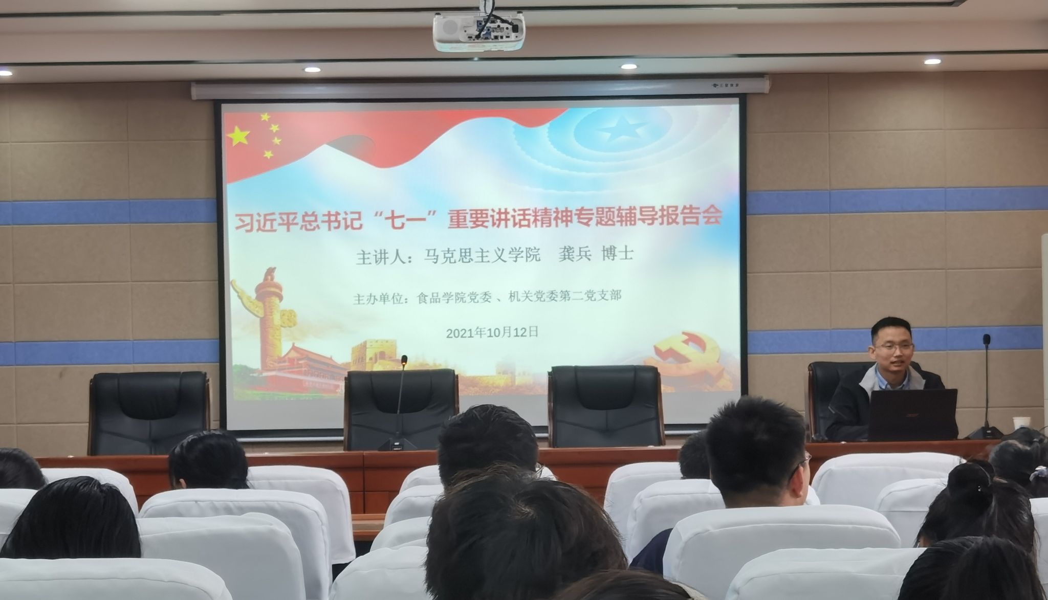 10月12日下午,公司党委、机关党委第二党支部联合举行学习贯彻习近平总书记“七一”重要讲话精神专题辅导报告会,邀请马克思主义公司龚兵博士作专题辅导报告,公司及机关党委第二党支部的近百名党员参加报告会。