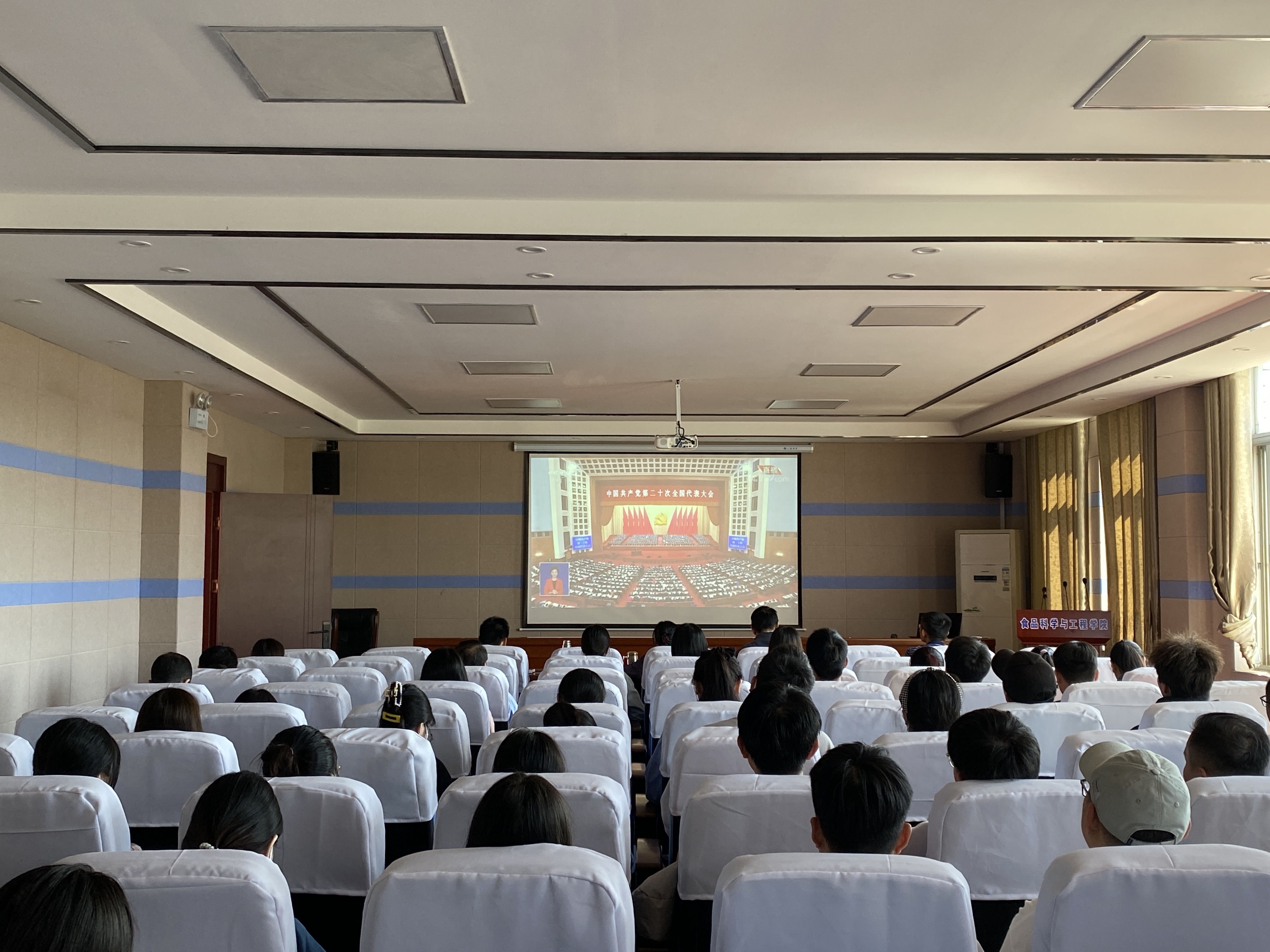 10月16日上午,中国共产党第二十次全国代表大会在北京隆重开幕。中共中央总书记习近平代表第十九届中央委员会向大会作报告大会主题为“高举中国特色社会主义伟大旗帜,全面贯彻习近平新时代中国特色社会主义思想,弘扬伟大建党精神,自信自强、守正创新,踔厉奋发、勇毅前行,为全面建设社会主义现代化国家、全面推进中华民族伟大复兴而团结奋斗”。公司组织师生党员以线上线下相结合的方式收听收看党的二十大开幕会盛况,公司全体院领导在五楼报告厅集中收看。