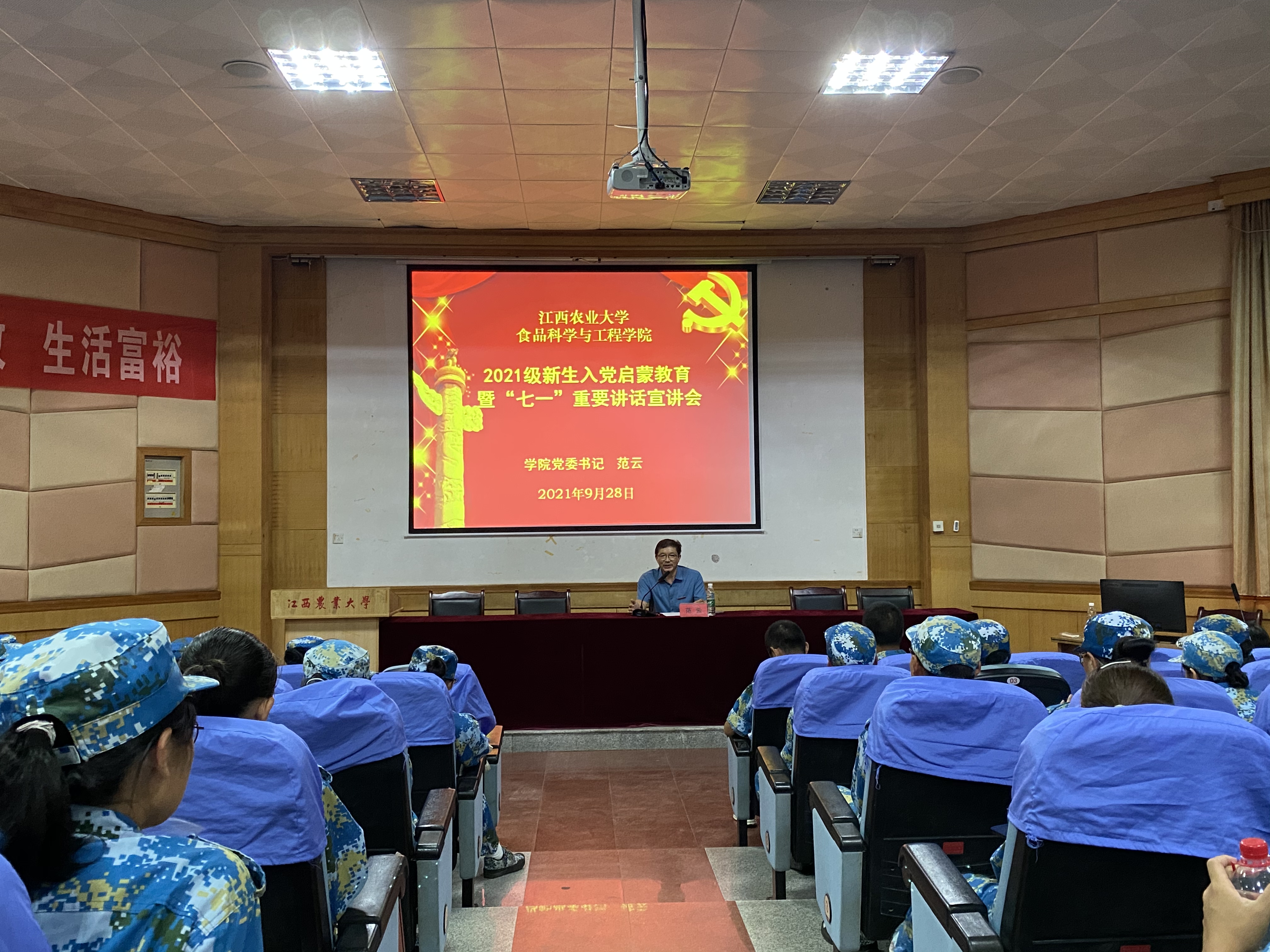 为深入学习贯彻习近平总书记“七一”重要讲话精神,推动党史学习教育走深走实,9月28日下午,公司党委书记范云在成教报告厅为公司21级新生开展入党启蒙教育暨“七一”重要讲话精神宣讲,宣讲会由公司党委副书记胡丹主持。