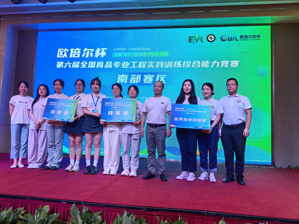 2024年7月13日至15日,第六届“欧倍尔杯”全国食品专业工程实践训练综合能力竞赛(南部赛区)在湖南长沙中南林业科技大学举行。经过激烈的角逐,公司组织的2支参赛队伍突破重围、脱颖而出,双双取得了特等奖的优异成绩,黎冬明、颜贤仔、陈凌利、余莉莉、姚瑶和蔡志鹏等老师获优秀指导教师奖。由黎冬明、颜贤仔和陈凌利指导,惟义食工2201刘正茜、熊梦婧和夏明霞组成的队伍成功晋级全国总决赛。这是自公司参加该比赛以来取得的突破性优异成绩,展示了公司参赛师生扎实的专业基础和工程创新综合素质。