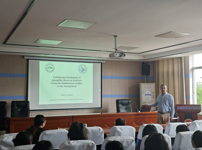 2024年6月4日,欧盟与中国科研合作与交流顾问、西班牙在华研究者协会会长,江苏省333高层次人才培养对象,南通老员工命科学公司Pedro Laborda教授应邀为公司师生作了题为“Colonization mechanism of Aspergillus flavus on kiwifruit: From the fundamental insights to the management”的学术报告。公司教师和上百名研究生参加了本次报告会,报告会由朱丽琴教授主持。