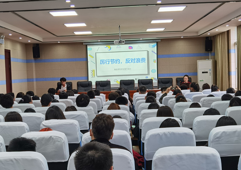 院学工办程莉老师结合食品学科专业特色,以从古至今节约粮食的好做法为切入点,通过视频、图文相结合的方式,为同学们宣讲珍惜粮食的重要性,并号召同学们用专业知识解决粮食浪费问题。院员工会执行主席于彬欣向全院同学发起“厉行节约,从我做起”的倡议,呼吁同学们养成节约的习惯,树立“浪费可耻,节约光荣”的观念,以实际行动爱粮节粮。