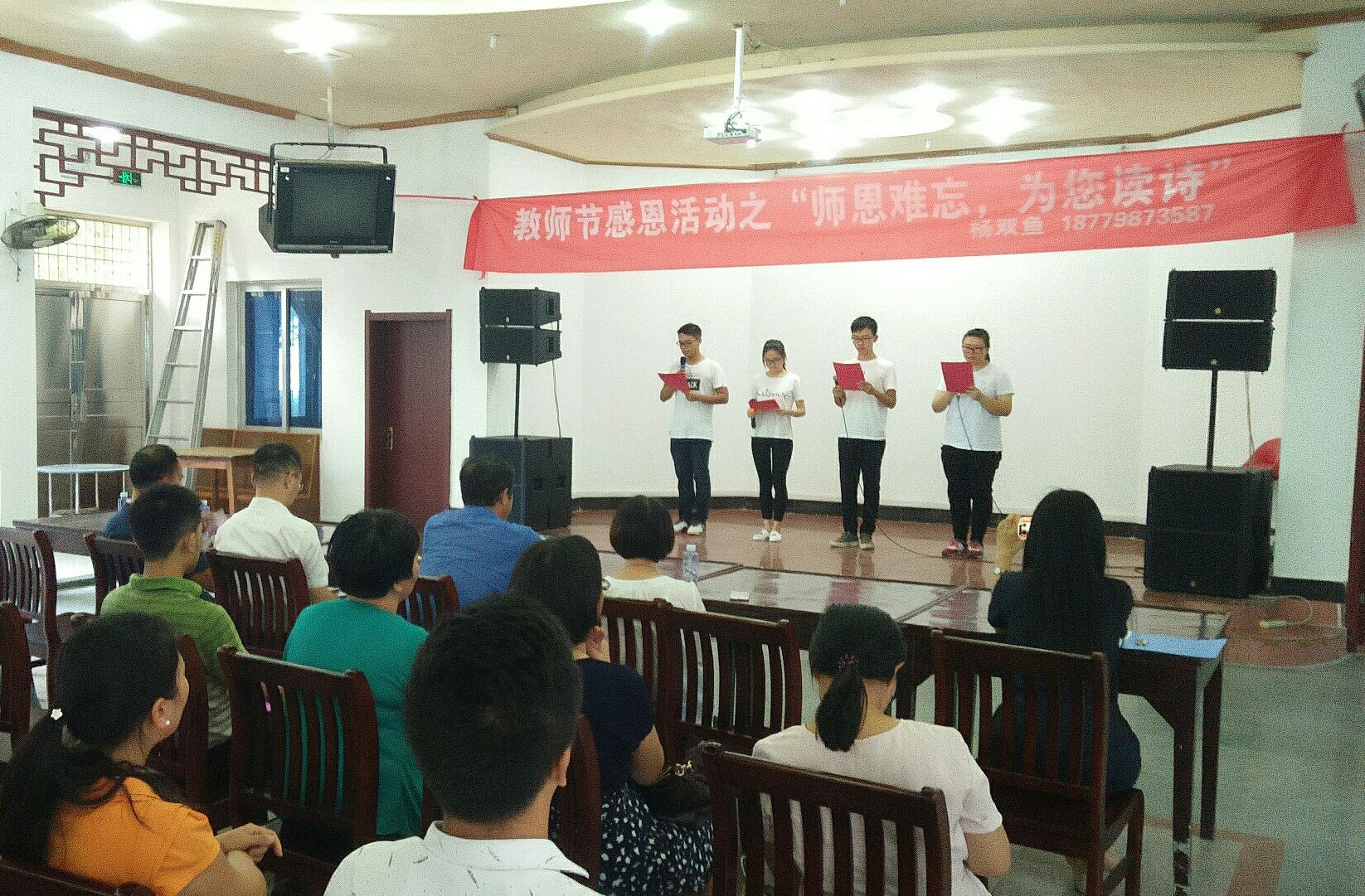 喜迎十九大,欢度教师节。在召开十九大之际,为了向广大教师和教育工作者表达最真诚的感谢和最崇高的敬意,PA视讯平台员工群体在2017年9月12 日下午于工会俱乐部组织举办了以“师恩难忘,为您读诗”为主题的教师节读书朗诵活动。