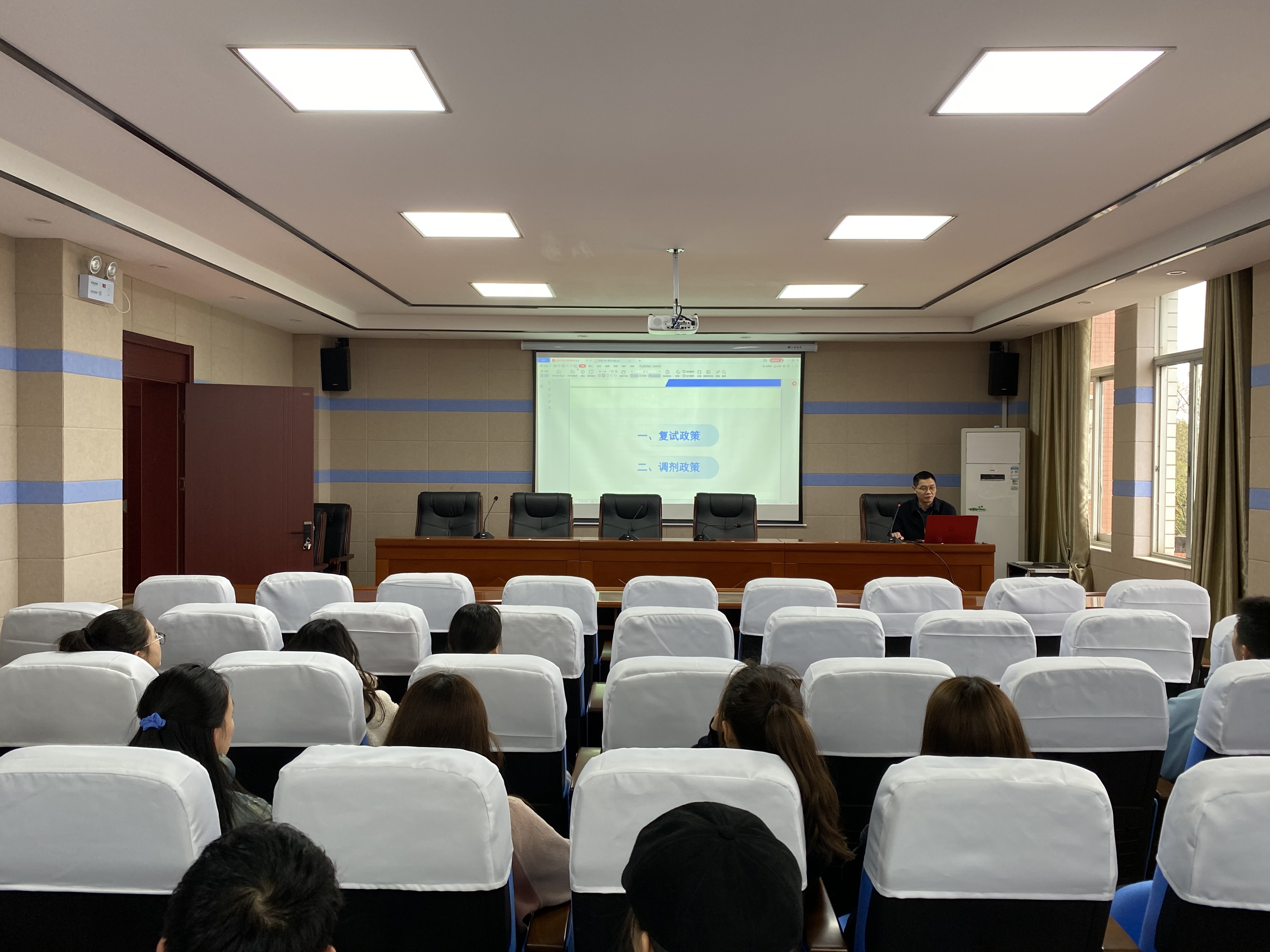 3月19日下午,公司于五楼科报厅召开2021年研究生复试调剂指导答疑会,经理王文君教授主讲,考研毕业生、就业工作人员参加,会议由公司党委副书记胡丹主持。