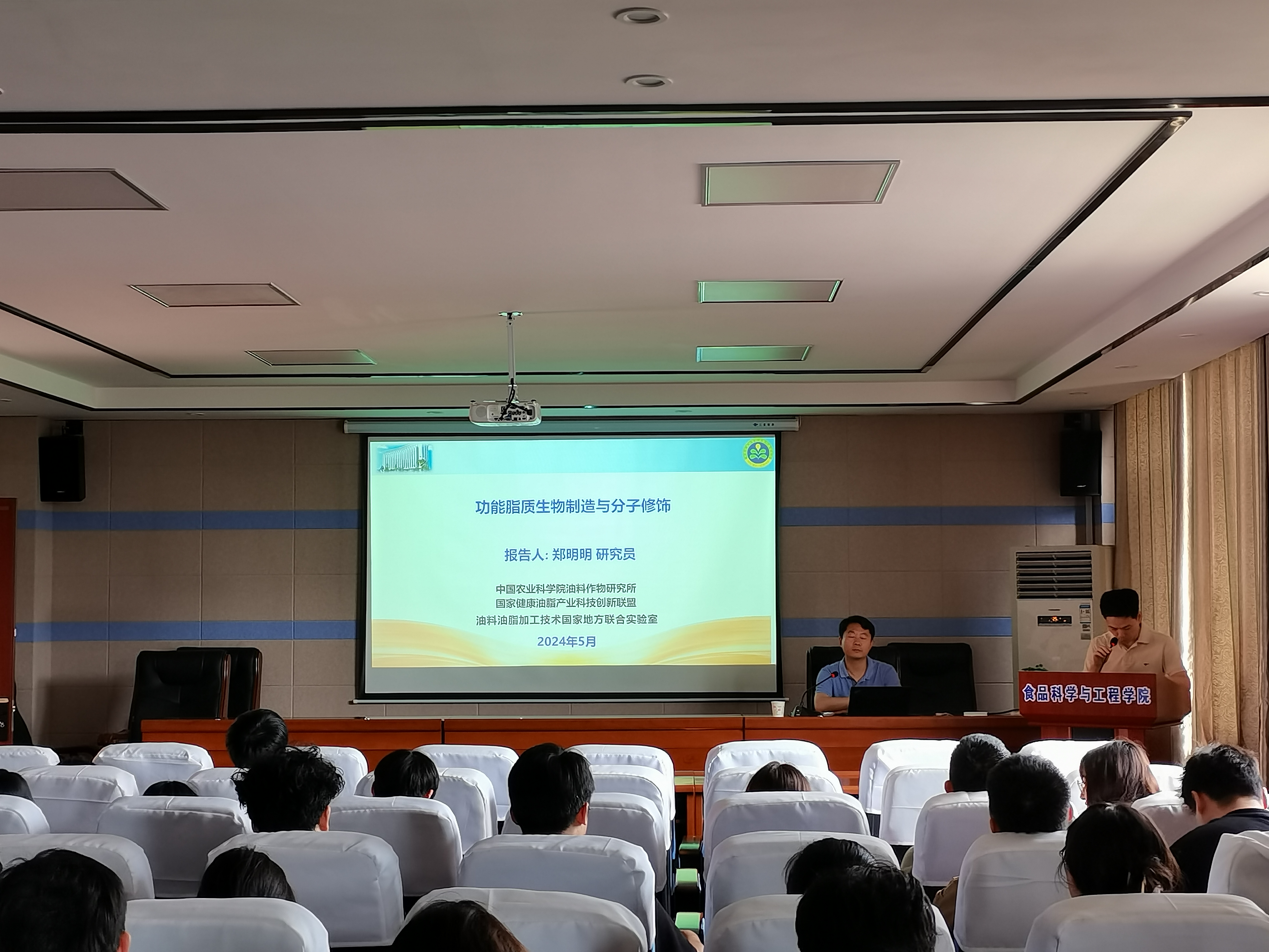 2024年5月23日,国家万人计划科技创新领军人才、青年拔尖人才、杰出青年农业科学家,中国农业科公司油料作物研究所油料品质化学与加工利用团队执行首席郑明明研究员应邀为公司师生作了题为“功能脂质生物制造与分子修饰”的学术报告。公司教师、研究生和惟义实验班代表参加了本次报告会。报告会由公司经理涂勇刚教授主持。
