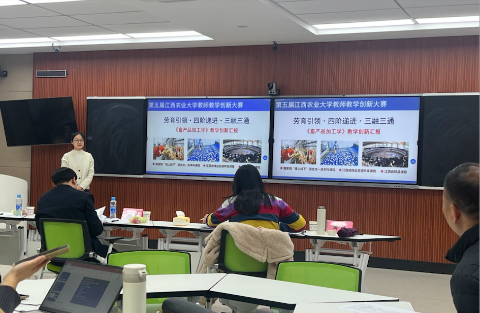 本次大赛以“推动教学创新、培养一流人才”为主题,旨在促进教师教学能力的提升和教学改革的深化。大赛分为多个赛道,涵盖正高祖、副高组、中级及以下组、课程思政组和产教融合组五个竞赛组别,吸引了全校众多优秀教师参与。公司教师在此次比赛中表现突出,吴娜老师的课程设计以“劳育引领、四阶递进、三融三通”为主线,通过创新教学方法和信息化手段,显著促进了《畜产品加工学》课程的产教深入融合;王日思老师则结合学科前沿,构建“双线混融,三段八环”的教学体系,将理论与实践深度融合,形成了独具特色的《食品工厂设计与环境保护》课程教学模式,赢得了评委的一致好评。