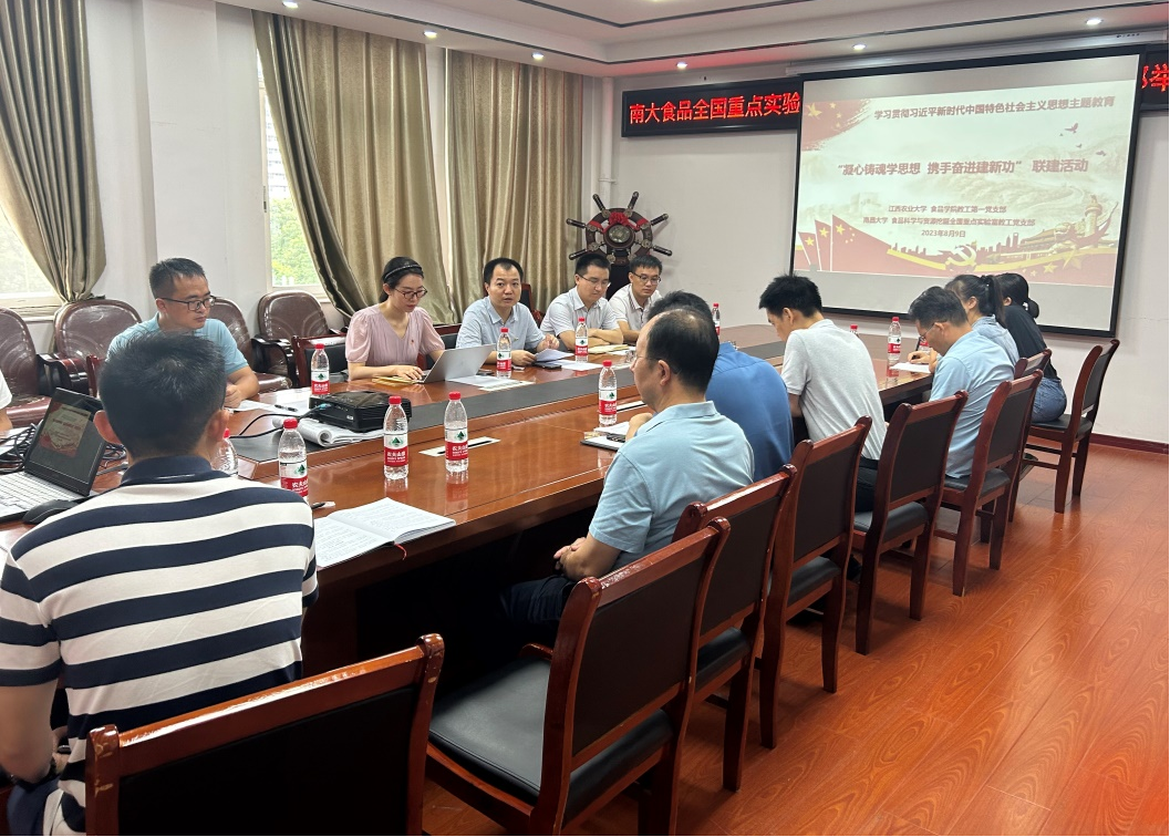 为深入推进学习贯彻习近平新时代中国特色社会主义思想主题教育,充分发挥党建引领作用,PA平台食品公司教工第一党支部与南昌大学食品科学与资源挖掘全国重点实验室教工党支部开展了联学联建活动。