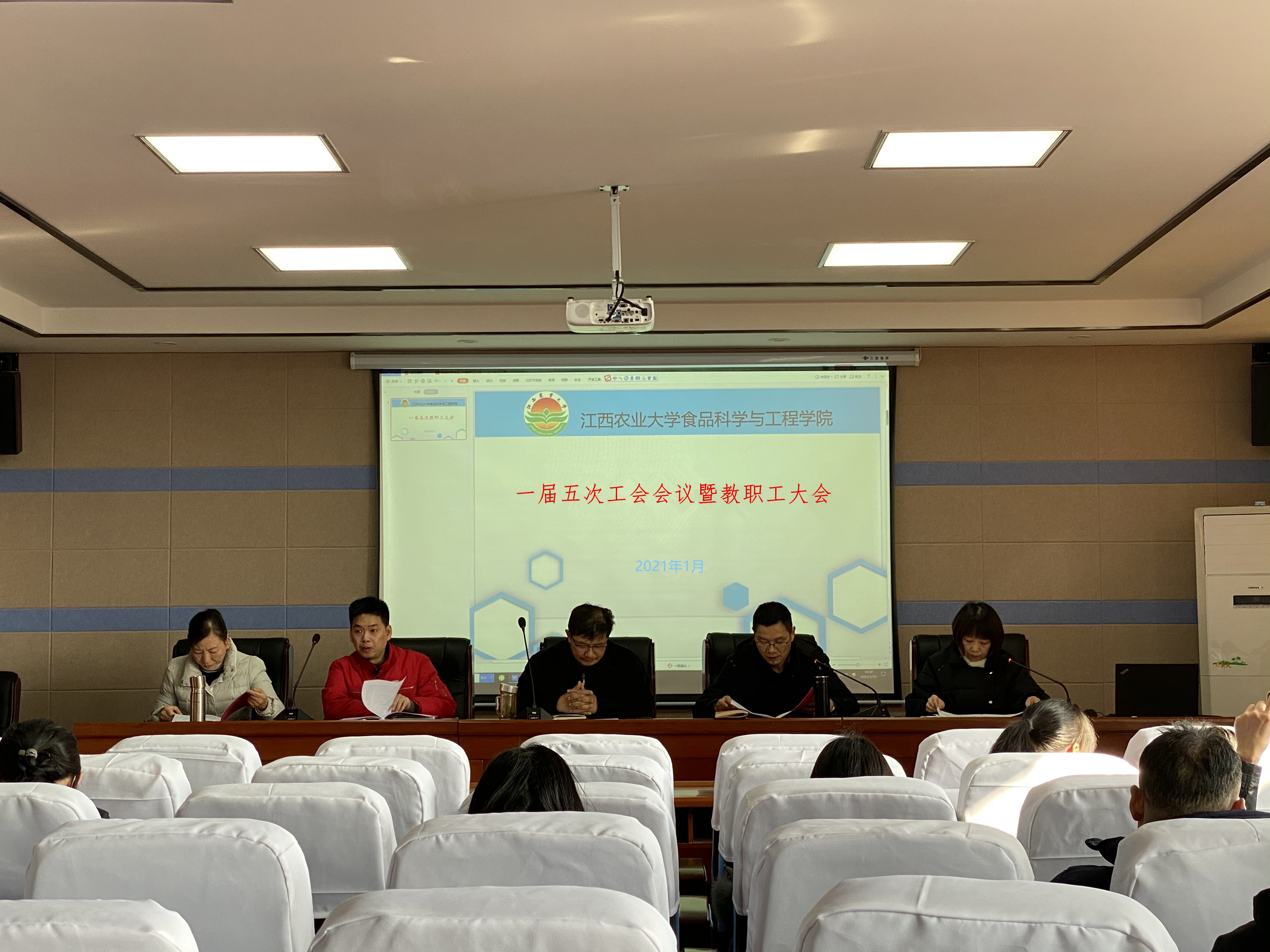 1月19日,我院在五楼报告厅召开一届五次工会会议暨教职工大会,公司全体院领导出席,全体教职工参会。会议由公司党委副书记胡丹主持。