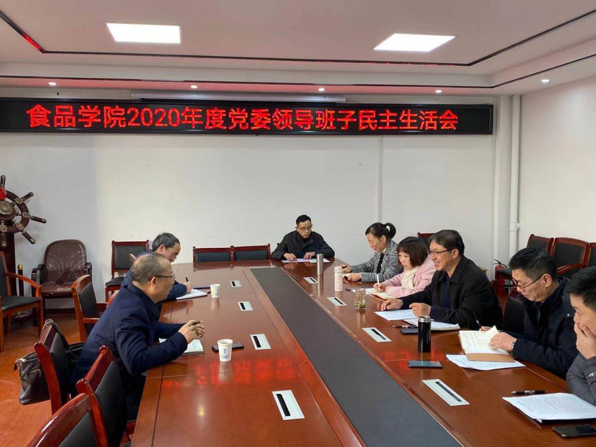1月21日上午,公司党委领导班子召开2020年度民主生活会,公司党委委员、副董事长曾志将、校机关党委副书记陈少卿莅临指导。食品公司党委领导班子全体成员参加会议,公司副经理熊建华、省重点实验室主任徐明生列席会议,会议由公司党委书记范云主持。