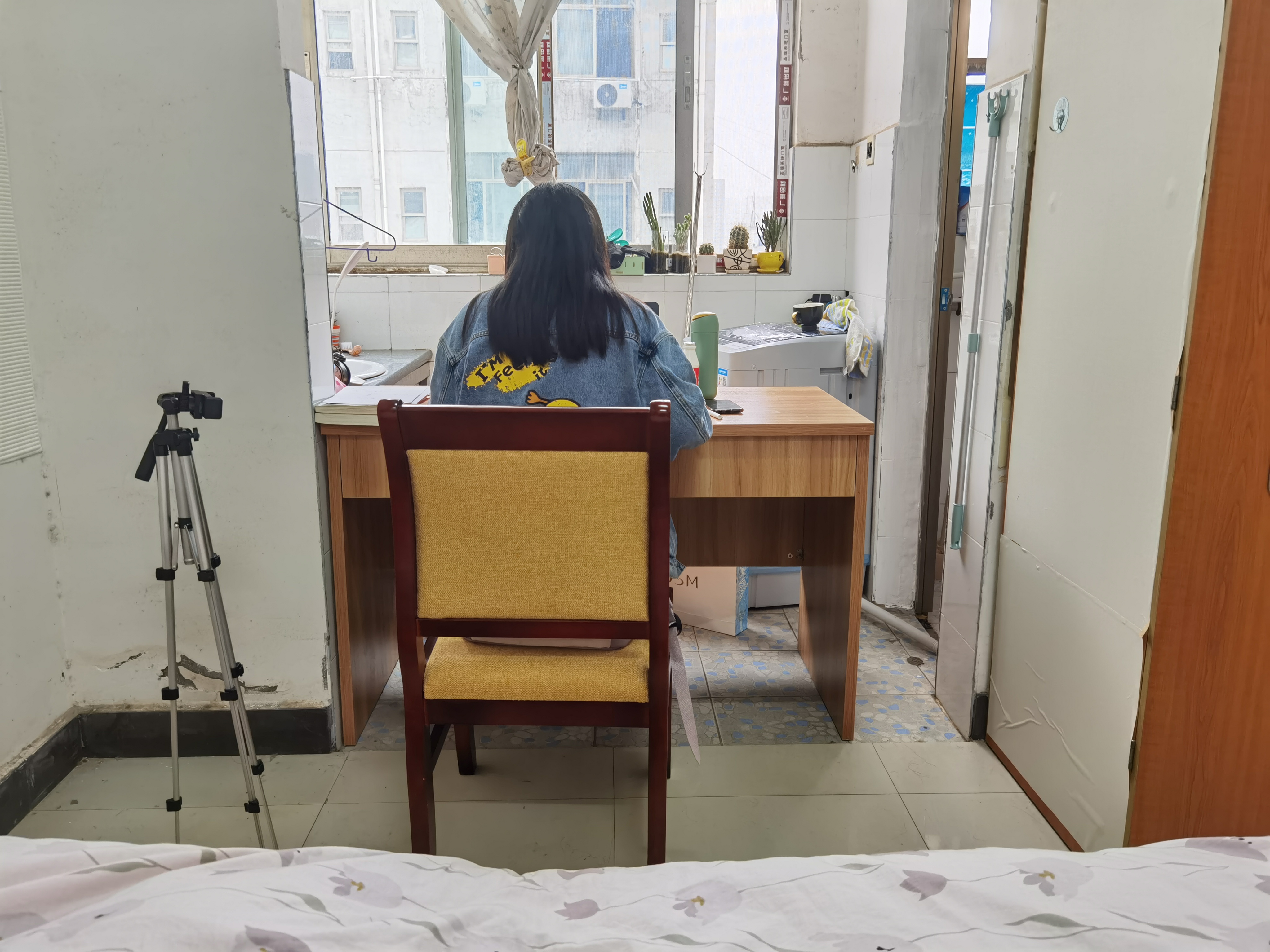图:公司建档立卡毕业生在辅导员寝室工作站调试复试设备