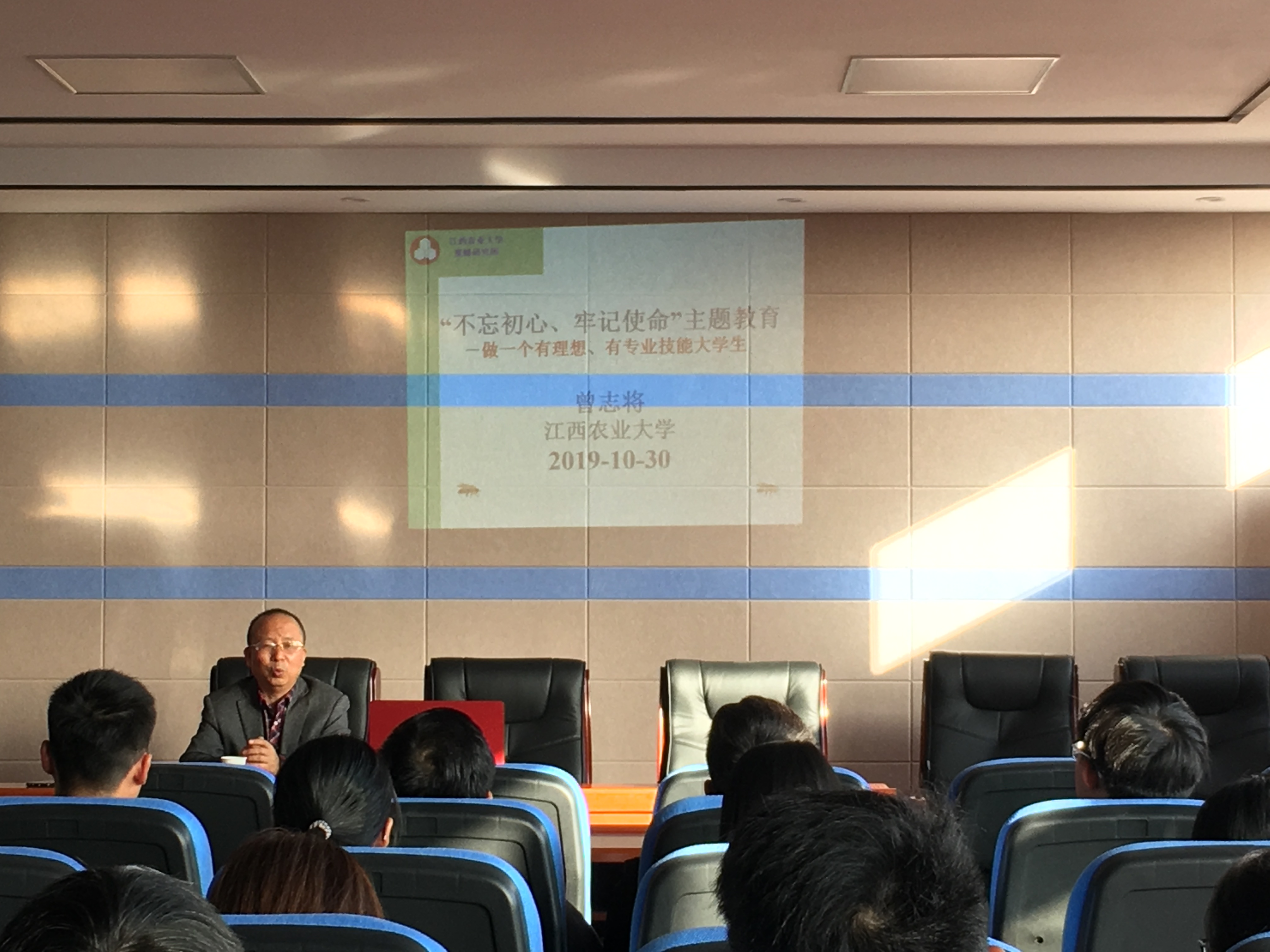 10月30日下午,副董事长曾志将赴公司5楼科报厅,深入联系班级食品质量与安全1903班,为班级同学以及公司员工党员以“做一个有理想,有专业技能的老员工”为题上思政课,课程由公司党委副书记胡丹同志主持。