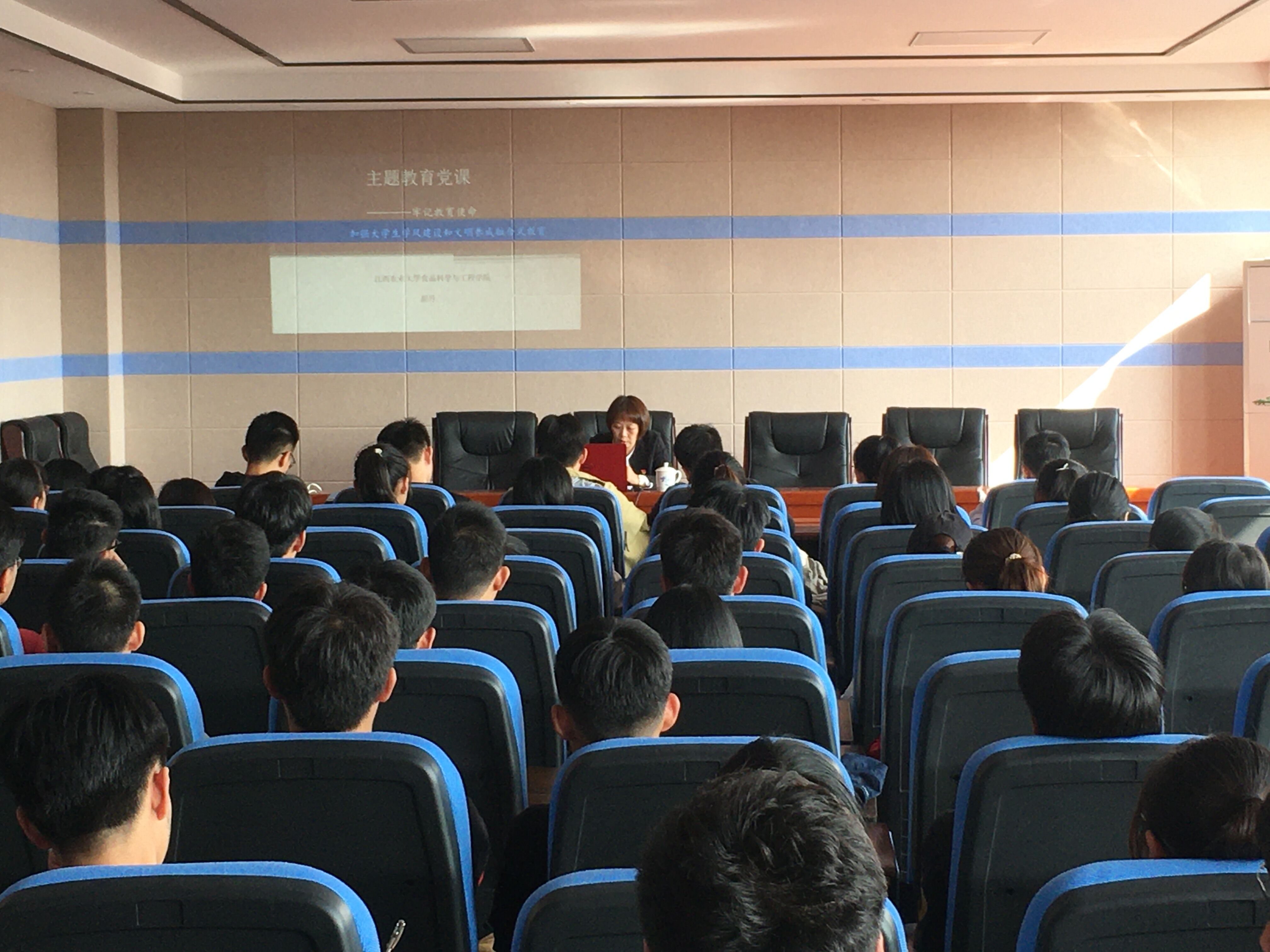 10月29号下午,公司党委副书记胡丹同志在公司5楼科报厅,以“加强老员工学风建设和文明养成融合式教育”为题给公司员工党员及员工干部上党课,公司员工党支部全体党员、团委员工会员工干部参加。