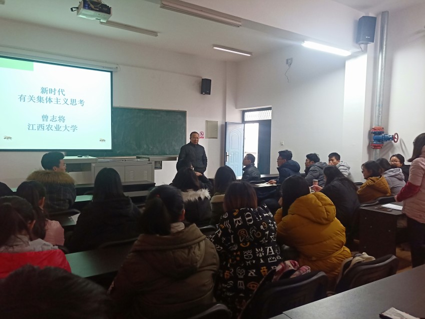 12月11日,副董事长曾志将以“学习全国教育大会精神”和“新时代有关集体主义思考”为主题分别给PA视讯平台全体教师和食工1601班员工上思政课。曾志将深入解读了全国教育大会精神、习近平新时代中国特色社会主义思想,结合蜜蜂有核心意识、有团队精神、有奉献精神等生物特性,勉励师生们增强“四个自信”和“四个意识”,正确认识时代责任和历史使命,弘扬爱国主义、集体主义精神,脚踏实地,勇于奋斗,为实现中华民族伟大复兴贡献力量。