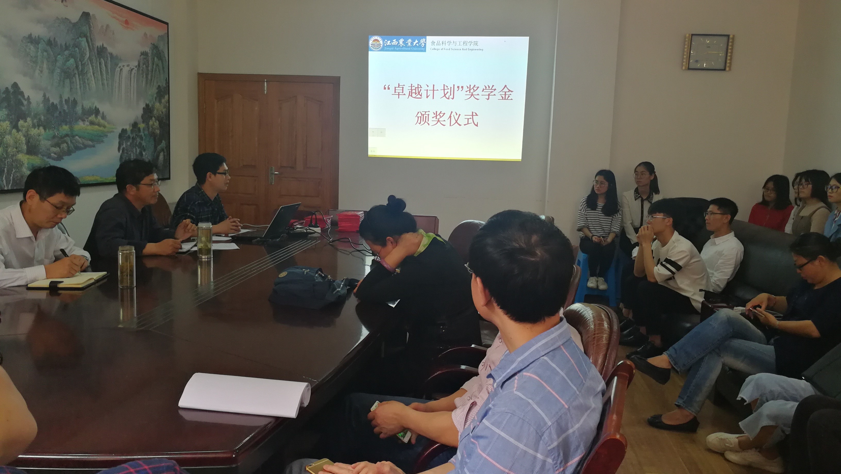 会议由黎冬明副教授主持。首先,吴国平副经理宣布获奖名单;食工1401班陈艳芳代表获奖同学进行了发言,感谢各位领导和老师长期以来的亲切关心和谆谆教诲,表示未来的路还很长,暂时的荣誉就好比是圆形的跑道,既是终点,又是起点,今后会继续努力前行,不辜负老师们的期望;随后,王文君经理代表公司对各位获奖同学表示祝贺,肯定了大家大学四年在学习上的模范带头作用,激励大家在后续研究生阶段或者工作中继续奋发向上,再创佳绩;接着,范云书记回顾了“卓越计划”的背景,表明不同的背景时期的人才培养目标有所不同,而新时期下更需要勇于创新,德、智、体、美全面发展的高素质优秀人才。最后,领导和老师为获奖同学颁发荣誉证书并留念拍照。