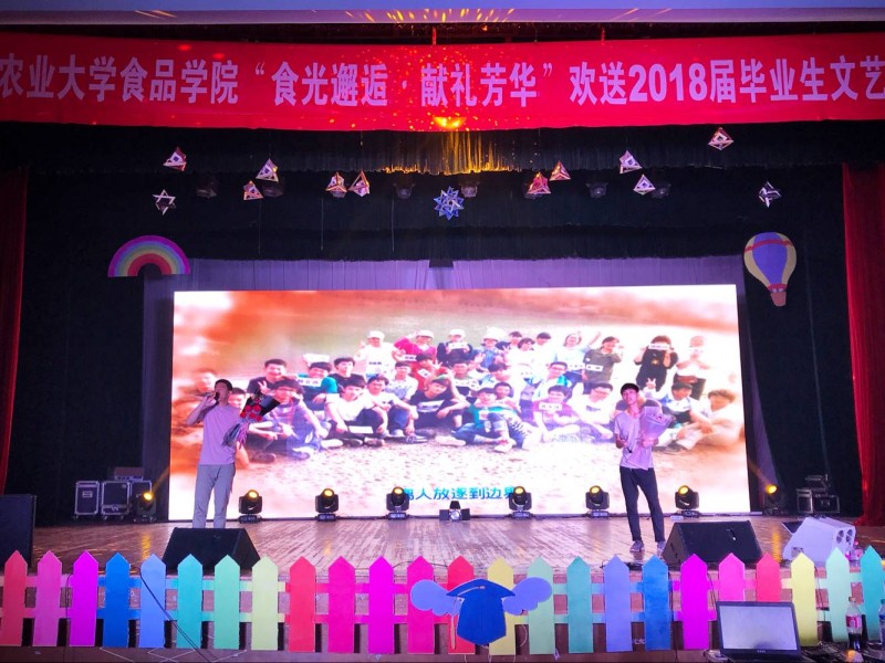 2018年5月13日晚,食品院以“食光邂逅,献礼芳华”为主题的毕业晚会在校大礼堂举办。院领导范云、王文君、胡丹、吴国平及全院700余名师生共同观看了演出。